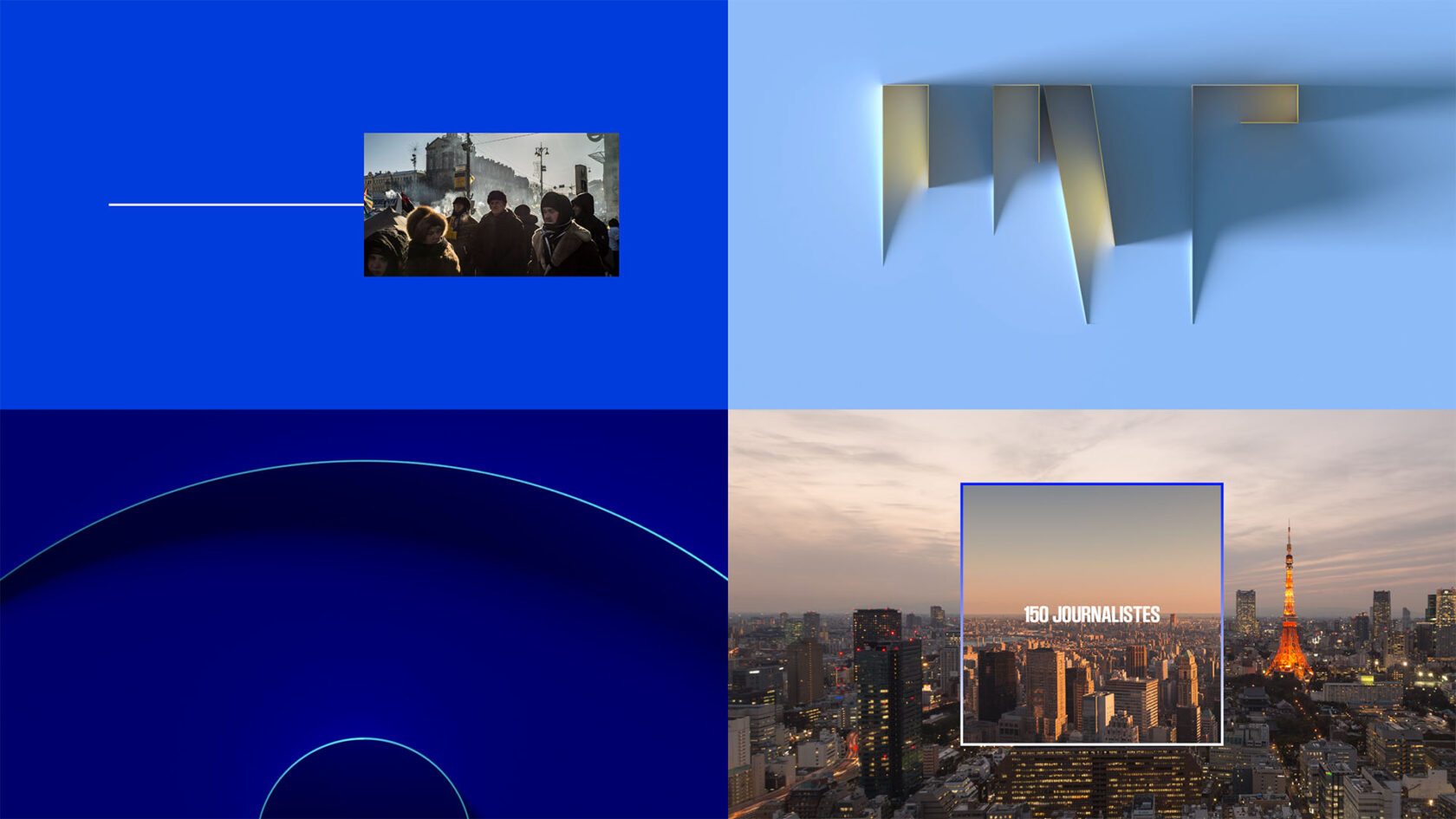 une identité qui s’articule autour du carré et d’une ligne animée symbolisant la sélection et le fil continu de l’information.