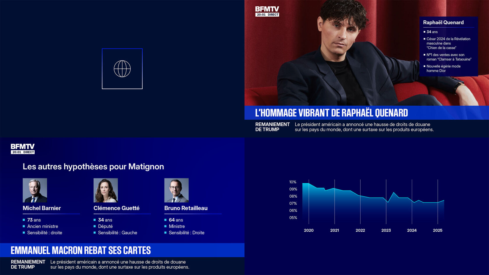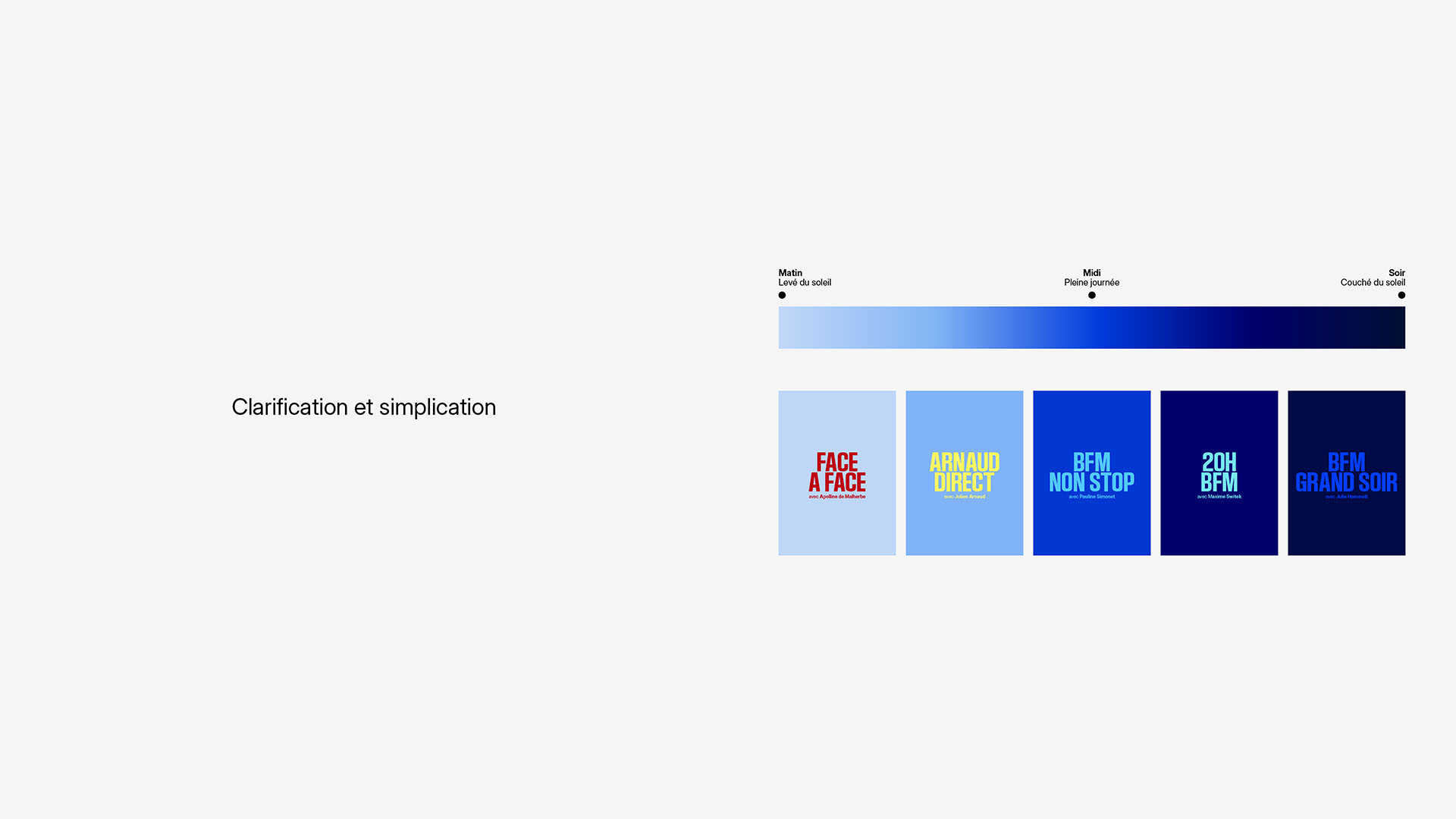 La typographie est plus forte et propriétaire. Le parti pris iconographique starifie les journalistes, et la gamme des couleurs joue la temporalité suivant les moments de la journée.