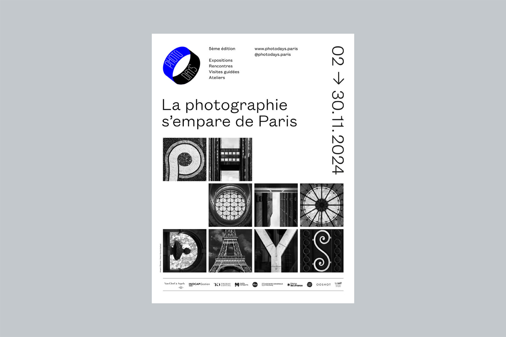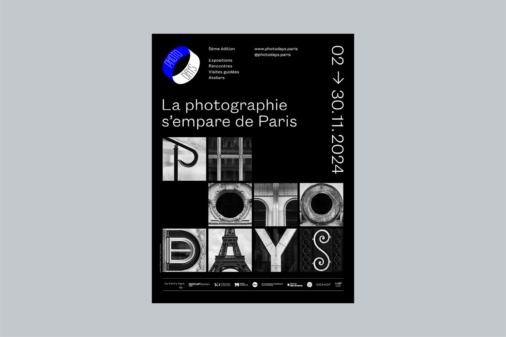 Pour exprimer comment pendant un mois la photographie s’empare littéralement de Paris, nous avons commandé au Photographe Quentin Guichard un système typo-photographique, shooté exclusivement à Paris, permettant de communiquer en affichage en édition, mais également sur le site et les réseaux sociaux de la marque.